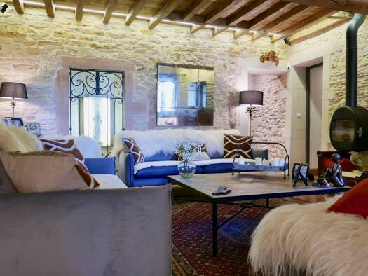 Just 4 km from the shops and chateau of Cormatin, at the foot of the village's listed Romanesque church, stands a magnificent old house that has been luxuriously renovated, set in beautiful grounds a...