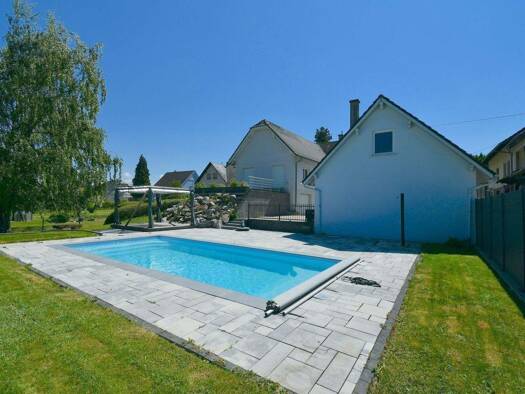 Sehr schönes Haus in ausgezeichnetem Zustand und mit hochwertiger Ausstattung: Luft/Wasser-Wärmepumpe mit Fußbodenheizung, Solarpaneele für Warmwasser und den Innenpool, 9-kW-Photovoltaikanlage zur S...