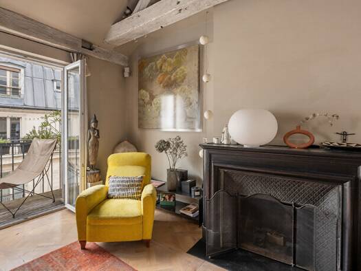 Paris 1st - In the heart of a quiet street in the 1st arrondissement, on the fourth and top floor of a Parisian building dating from 1830, this 75 m2 duplex has been completely redesigned by architec...