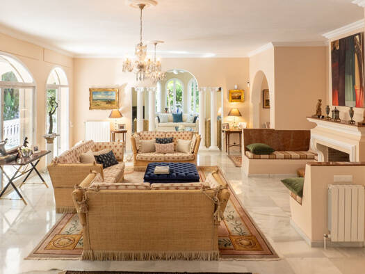 This magnificent traditional-style villa is located in the exclusive New Golden Mile, within the prestigious El Presidente community, just 50 metres from the beach and its newly built seaside promena...