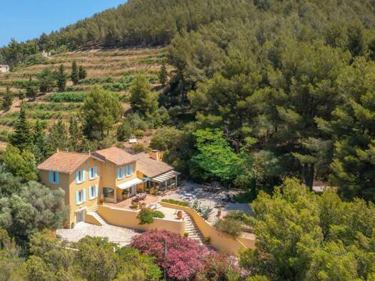 Large 280 m2 family villa with superb views of the sea, Cap Canaille, and the hills of Cassis. Surrounded by vegetation, sheltered from passersby and the wind, and seemingly suspended above the Cassi...