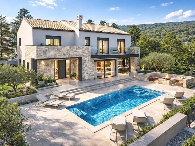 Zum Verkauf steht eine wunderschöne, moderne Villa mit Swimmingpool und herrlichem Meerblick in bester Lage nahe Malinska auf der Insel Krk! Die Villa erstreckt sich übe...