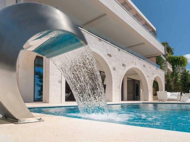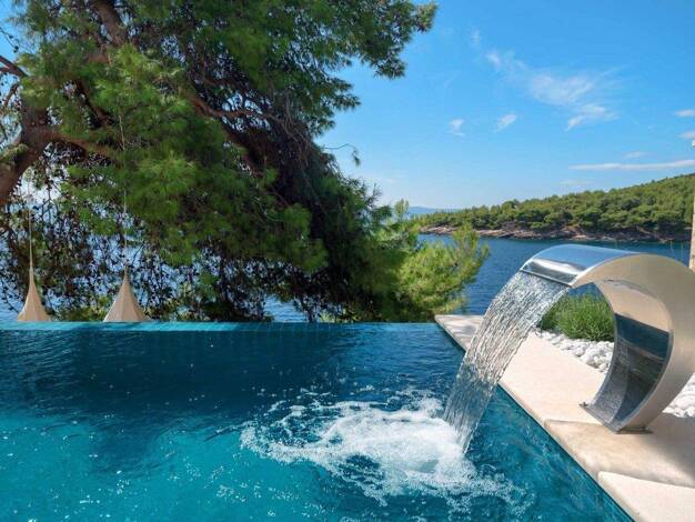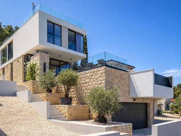 Direkt in erster Meereslinie gelegen und mit unverbaubarem Blick über die Adria präsentiert sich diese exklusive Natursteinvilla als seltene Gelegenheit in einer der begehrtesten Lagen der Insel Brac...