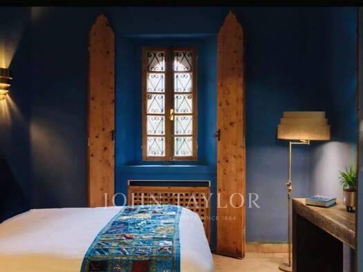 VILLA HISTORIQUE PALMERAIE TRIANGLE D'OR Cette propriété exclusive aux accents mauresques édifiée dans les années 70 est idéalement située à moins de 15 mn du centre de la Ville Ocre. Elle a été l'un...
