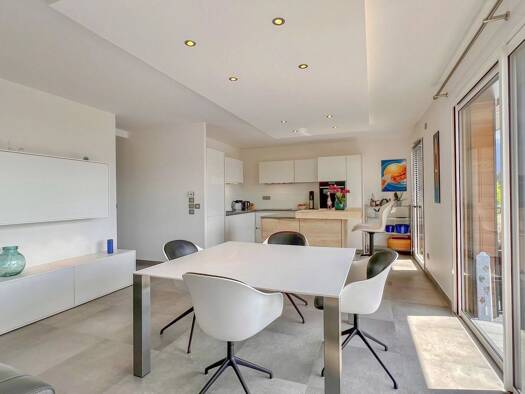 Discover this contemporary apartment on the top floor of a luxury residence in a sought-after district of Annecy le Vieux. It boasts an extraordinary 180 degree view of the lake, mountains and city o...