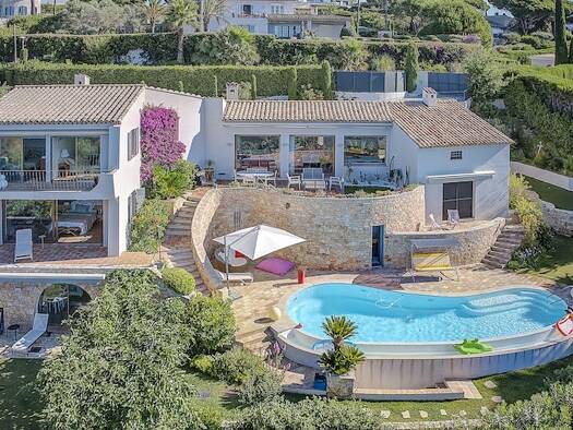 SUPER-CANNES, VILLA WITH PANORAMIC SEA VIEWS. In the highly sought-after neighbourhood of Super-Cannes, discover this superb villa designed by a renowned architect, offering an exceptional living env...