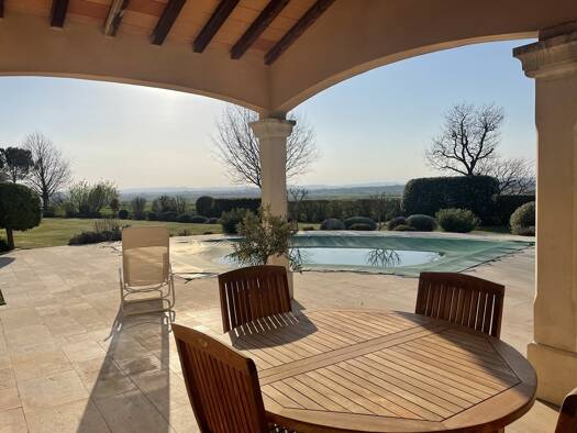 Situated 8km south of Uzes, in a popular village with shops, this beautiful residence boasts breathtaking 180 degree views. This bright, well-appointed home offers 203 m2 of living space and features...