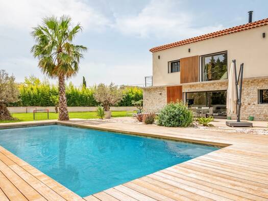 A 1962 "Californian" villa, with a garden, patios and swimming pool, facing Mt Ventoux, the Lubéron and the Alpilles, 15 min from Avignon's TGV station. Sitting atop a plateau, where one of the most ...