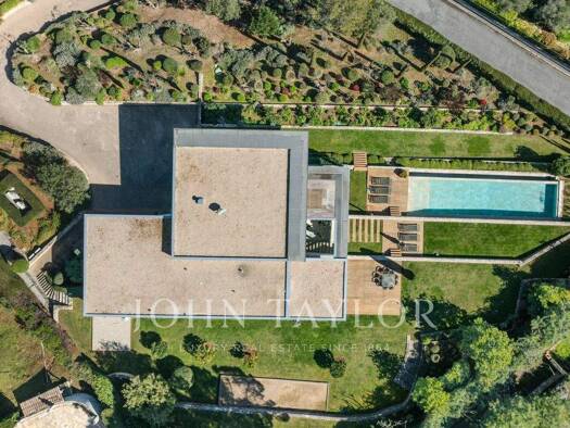 In einer prestigeträchtigen Domaine, in absoluter Ruhe, wunderschöne, zeitgenössische Villa mit Meer- und Dorfblick, gelegen auf einem ca. 4.000 m² großen, bepflanzten Grundstück mit beheiztem Überla...