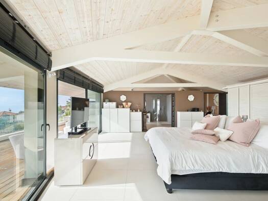 Located near the town center, the port, and the beaches, this bright contemporary villa of 230 m2 sits on a landscaped plot of approximately 2,000 m2, offering an exceptional indoor/outdoor lifestyle...