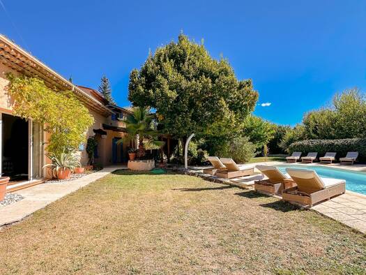 Just minutes from the village, discover this superb property of 320 m2 approximatively combining the authentic charm of Provence with high-quality materials. Nestled in the heart of a magnificent lan...