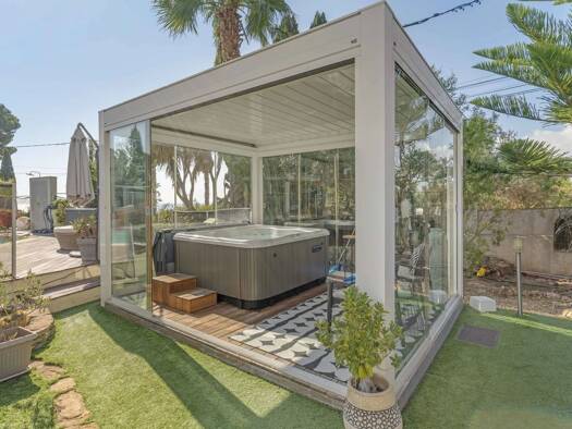 Located near the town center, the port, and the beaches, this bright contemporary villa of 230 m2 sits on a landscaped plot of approximately 2,000 m2, offering an exceptional indoor/outdoor lifestyle...