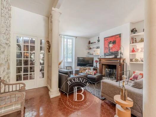 Architect-designed house in absolute peace and quiet, nestling at the end of a cul-de-sac, set in superb wooded grounds of 1,437 m2. Surrounded by a majestic plane tree and laurel bushes, this light-...
