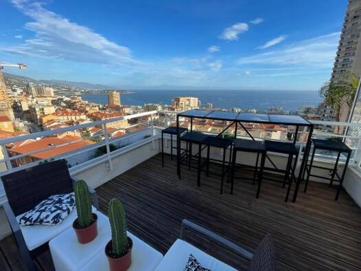 Meerespanorama, Herrliche 3-Zimmer-Wohnung im begehrten Viertel des Zentrums von Cap-d'Ail. Genießen Sie eine großzügige Wohnfläche von 75 m², ergänzt durch 2 Terrassen mit je 20 m², sowie ein gemütl...