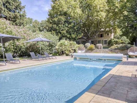 Close to Avignon with its TGV station and motorway, this imposing 18th-century Provencal bastide, with its 300-year-old plane tree, is located in the heart of the Vacqueyras vineyards, a few kilometr...