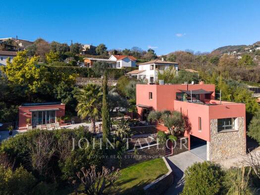 Nestled in a peaceful setting, in a dominant position and close to everyday amenities, this sumptuous modern Provencal-style villa overlooks Saint-Paul de Vence, offering one of the most beautiful vi...