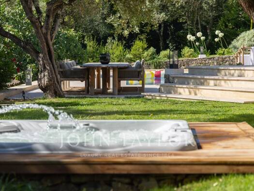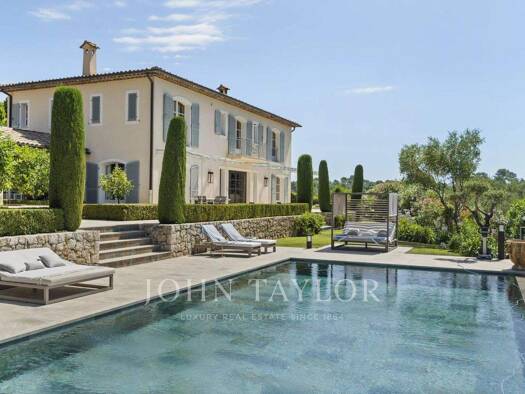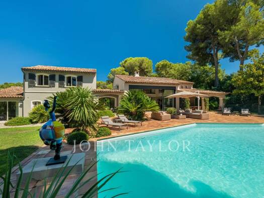 Nichée dans un domaine fermé et confidentiel à quelques pas du vieux village de Mougins, cette villa méditerranéenne élégante et rénovée avec goût vous offre un cadre de vacances exceptionnel entre r...