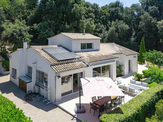 nestled at the end of a quiet cul-de-sac, this 171 sqm neo-provençal villa charms with its peaceful ambiance and generous volumes, set on a beautifully wooded 1,400 sqm plot. flooded with natural lig...
