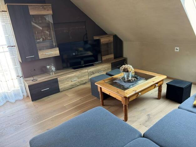 Großer Wohnbereich mit Küche. Ein kleineres Schlafzimmer + Ein sehr großes Schlafzimmer. Bad neu. Abstellraum mit ca. 20m². Stellplatz vor dem Haus. Garten/Grundstück nutzbar. Kaltmiete 650€ + 200€ N...