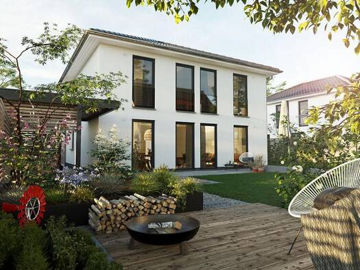 Die kubische Form ist der Klassiker im Stadthausdesign und prägt auch das Aussehen unseres Stadthaus Flair 124. Im Inneren setzt sich der urbane Stil fort: der großzügige Wohn- und Essbereich erstrec...