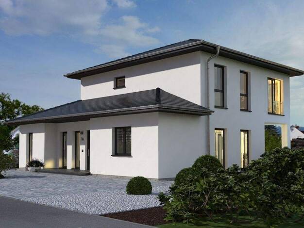 Edel und zeitlos präsentiert sich das Bauhaus Novum jedem, der Wert auf modernste Architektur legt. Der Design-Entwurf spricht eine klare und kompromisslose Formensprache. Schmale Fenster akzentuiere...