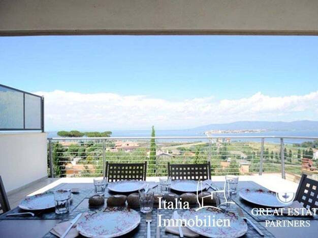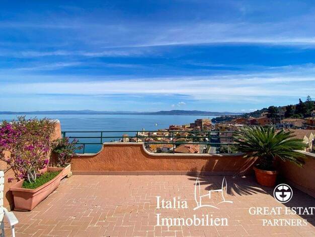 Penthouse mit herrlicher Terrasse mit Meerblick in Porto Santo Stefano, in der Nähe der wichtigsten Dienstleistungen. Die Immobilie besteht aus einem Wohnbereich mit direktem Zugang zur Terrasse, ein...