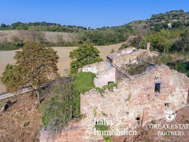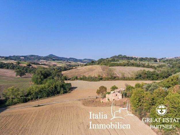 Schönes restaurierungsbedürftiges Bauernhaus von ca. 400 qm in Panoramalage inmitten der herrlichen Hügellandschaft von Montepulciano. Das Grundstück umfasst etwa 2 ha Land. Eingebettet in die maleri...