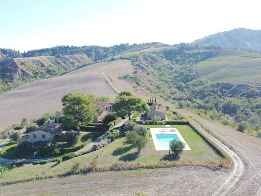 Landgut mit zwei Bauernhäusern in ländlicher Umgebung zwischen Volterra und Lajatico, eingebettet in eine atemberaubende Naturlandschaft. Das Anwesen ist bequem über eine Privatstraße erreichbar und ...