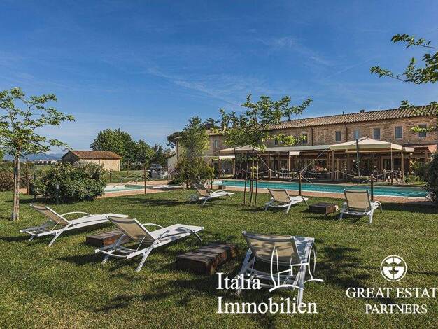 In Assisi (PG) bieten wir ein wunderschönes und einzigartiges Anwesen inklusive Gebäuden und Grundstücken mit einem funktionierenden Agritourismusbetrieb zum Verkauf an. Das Anwesen liegt in der umbr...