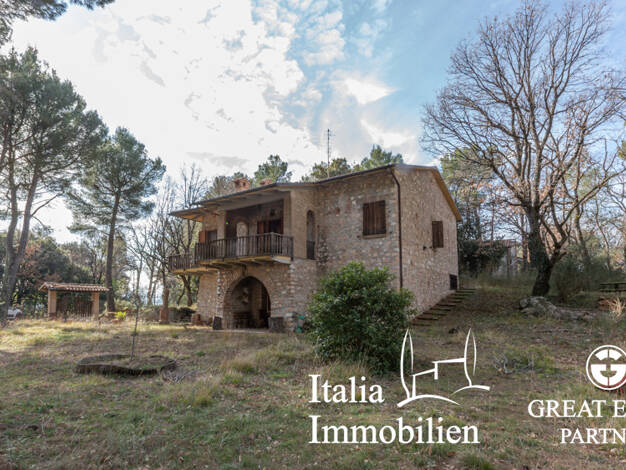 Objektbeschreibung In einer dominanten und ruhigen Lage auf der Spitze eines Hügels, umgeben von Natur mit einem 360° Blick auf die umbrische Landschaft, ist dieses schöne Stein- und Ziegelhaus, das ...