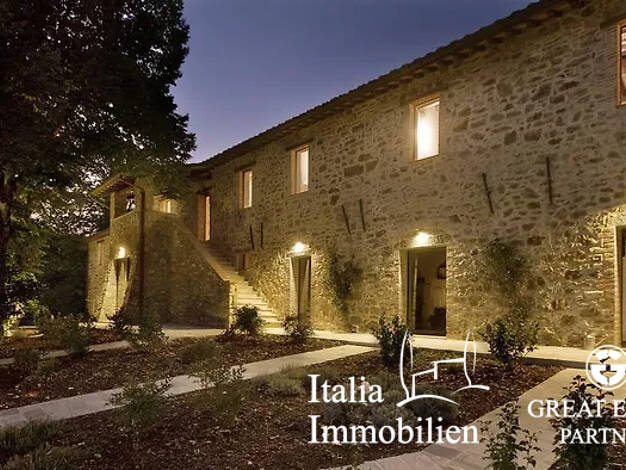 Umgeben von der malerischen Hügellandschaft Umbriens bietet diese Mehrfamilienvilla eine Oase der Ruhe und Privatsphäre, nur wenige Kilometer vom Trasimeno See entfernt. Das teilweise restaurierte Ha...