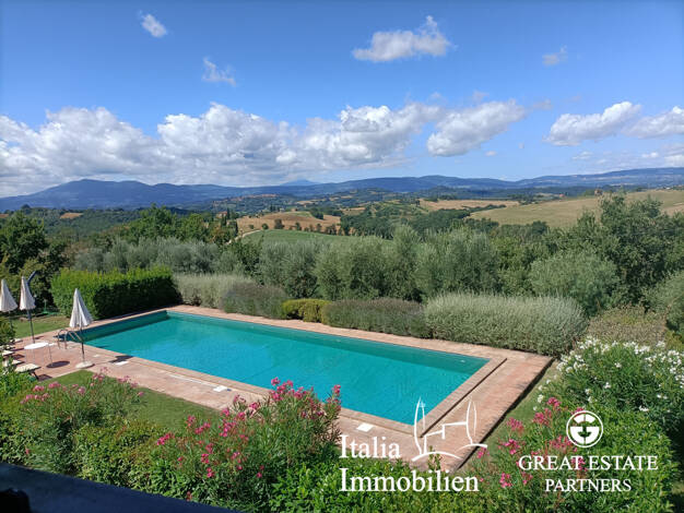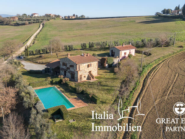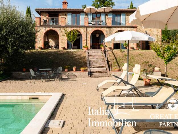 Zum Verkauf steht ein elegantes, zweistöckiges Landhaus mit Swimmingpool und Gästehaus in Castiglione del Lago. Es verfügt über insgesamt vier Schlafzimmer und vier Badezimmer. Das Haus liegt inmitte...