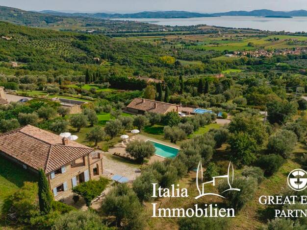 Die Immobilie "Il Gelso" ist ein authentisches Landhaus aus dem späten 19. Jahrhundert - Es liegt auf einer Anhöhe mit einem atemberaubenden Blick auf den Trasimeno See. Eingebettet in einen weitläuf...