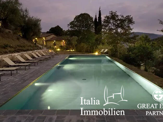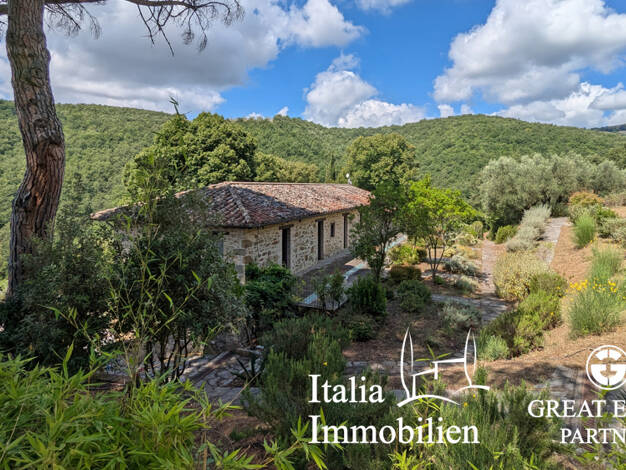 Objektbeschreibung Etwa 3 km von Passignano, in dominanter Lage, ist dieses alte dreistöckige Herrenhaus von 470 m2 aus dem Jahr 1816, das einst einer Adelsfamilie gehörte. Es wurde in den 90er Jahre...