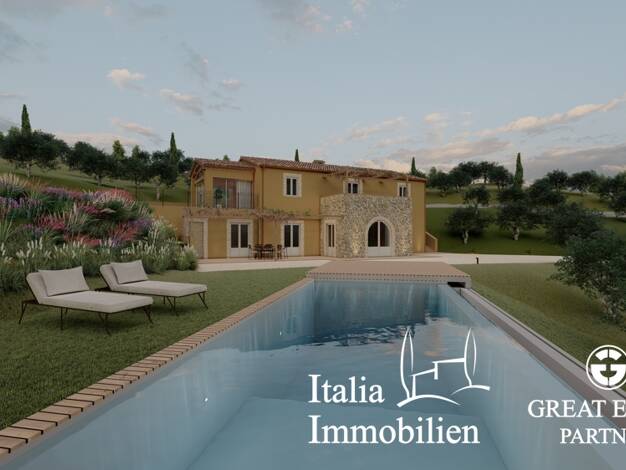 Diese künftige freistehende Villa befindet sich in einer einzigartigen Lage und bietet einen atemberaubenden Blick auf den Lago Trasimeno. Dank eines genehmigten Projekts für eine Villa von ca. 300 m...