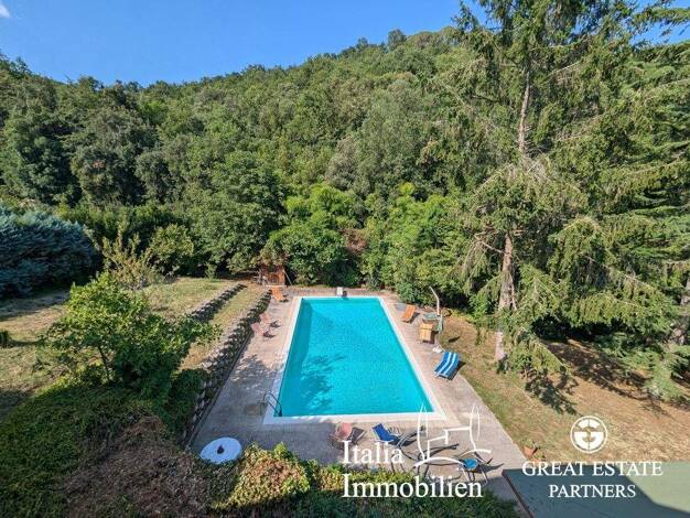 Mit Blick auf historische Dörfer und authentische Landschaft verbindet diese Villa Eleganz, Komfort und Privatsphäre in einem einzigartigen Ambiente. Die 360°-Sicht auf die umbrellischen Hügel, der P...