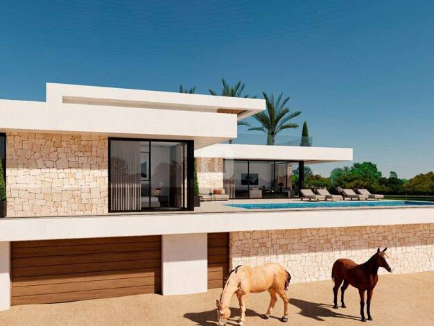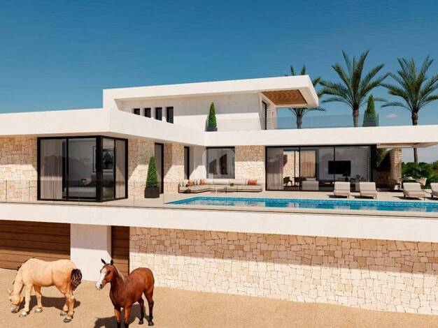 Kurzbeschreibung Die exklusive Villenkolonie in Monte Solana, Alicante, haben private Pools und einen freien Meerblick auf großen Grundstücken, mit Privatsphäre, Komfort und eine gute Anbindung an di...