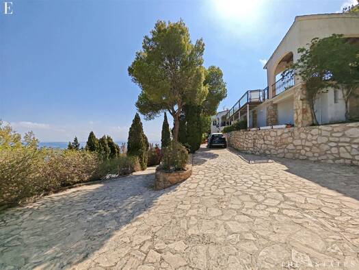 Auf erhöhter Lage in Dénia beeindruckt diese elegante Villa mit drei Schlafzimmern und drei Badezimmern sofort durch weitreichende Panoramablicke über die Stadt hinaus aufs Mittelmeer. Komfort mit un...