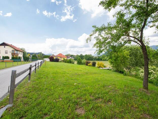 Das vollkommen ebene Grundstück mit herrlichem Fernblick auf den Hochobir und die Karawanken zeichnet sich durch seine ländliche und doch leicht erreichbare Lage aus. Neben der Autobahnabfahrt Völker...