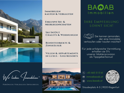 Lagebeschreibung: Dieses wunderschöne Baugrundstück befindet sich in einer idyllischen und sonnigen Ruhelage, in unmittelbarer Nähe des Golfplatzes Finkenstein und dem traumhaften und beliebten Faake...