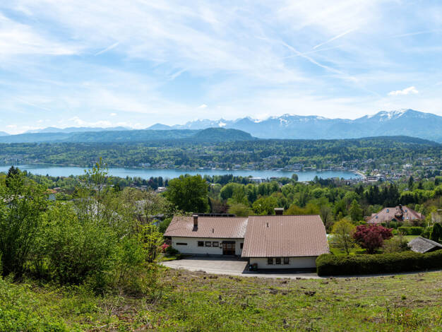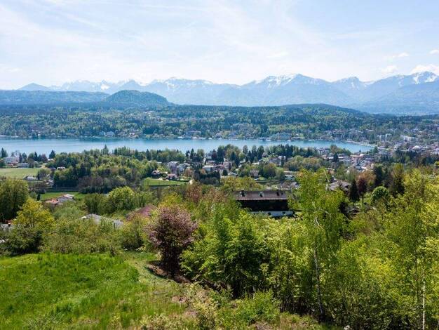 Velden/Wörthersee Exklusives Baugrundstück mit eindrucksvollem See- und Bergblick Lage/Beschreibung: Dieses absolut sonnige Baugrundstück liegt oberhalb von Velden und verfügt über einen atemberauben...