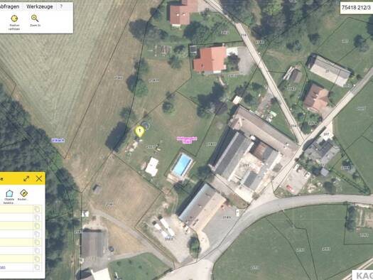 Das sehr grosse Grundstueck 2372 m2 ist zur Haelfte als Bauland gewidmet und mit Straeuchern und Baeumen bewachsen. Es wird durch eine Felsrippe geteilt, die ebenfalls noch Teil des Baulands ist. Das...