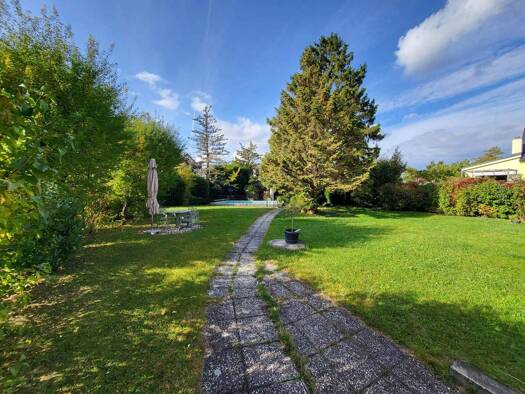 LAGE Das Grundstück befindet sich in einer beliebten Wohngegenden der Region - geprägt von viel Grün, gepflegten Gärten und einer harmonischen Nachbarschaft. Die ruhige, aber dennoch zentrale Lage bi...