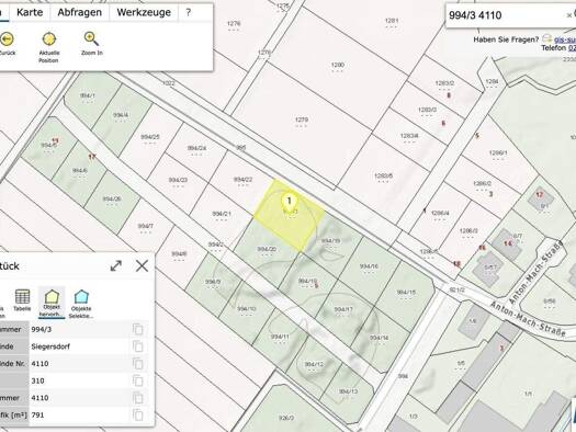 Beschreibung: Grundstück mit mehr als 22 m Straßenfluchtbreite zu verkaufen Bauland Wohngebiet ca 800 m2, Aufschließung bezahlt. VB 275.000,- Barzahler auf Grund langer Bankbew...