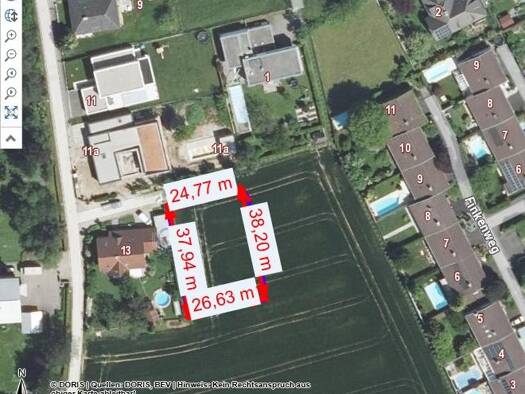 Grundstücksfläche 13.724 m2 (Neu nach der Flächen-Änderung) Bauland in einem Stück - SONNIG und EBEN! Das Grundstück kann auch geteilt werden! Parzelle für den Wohnbau 1.434m², GFZ 0,8 wi...