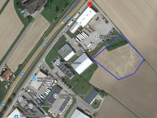 Ein Gewerbegrundstück mit MB Widmung direkt an der Hauptstasse B 137. Man wird gesehen, denn da fahren Tausende Autos vorbei am Tag. Richtung Straße gibt es einen Grünzonenbereich.. Neben Wieshoferst...