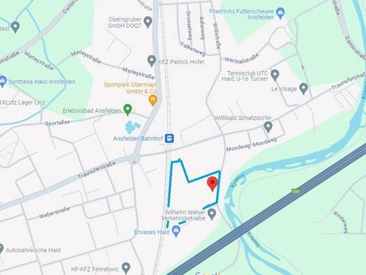 Ein großes Grundstück mit B Widmung in unmittelbarer Nähe der WELSER Verkehrsbetriebe Auf einer Seite ist die Bahn. Da muss man 12 Meter Bauabstand halten aber auf Antrag kann das auch weniger sein. ...