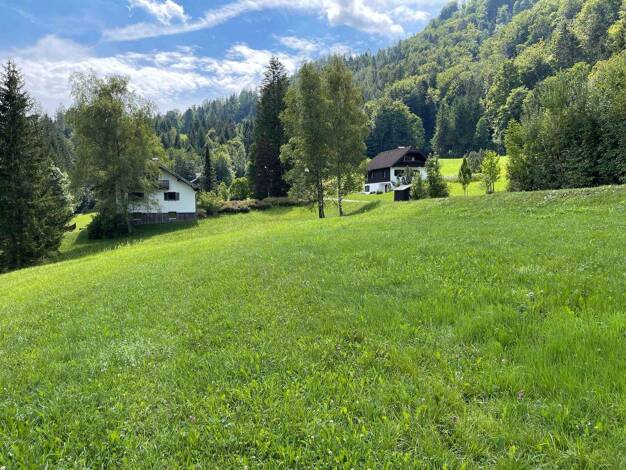 Das angebotene Grundstück erstreckt sich über rund. 900 m² und liegt malerisch auf einer kleinen Anhöhe am Waldrand, umgeben von Wiesen und Wäldern. Über einen kleinen Güterweg (Sackgasse) ers...