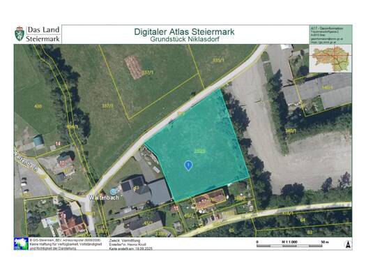 Zum Verkauf steht ein 3.830 m² großes Baugrundstück im Grenzkataster in Waltenbach - Niklasdorf. Laut aktuellem Flächenwidmungsplan ist das Grundstück als L(WA) - Allgemeines Wohngebiet mit einer Bau...