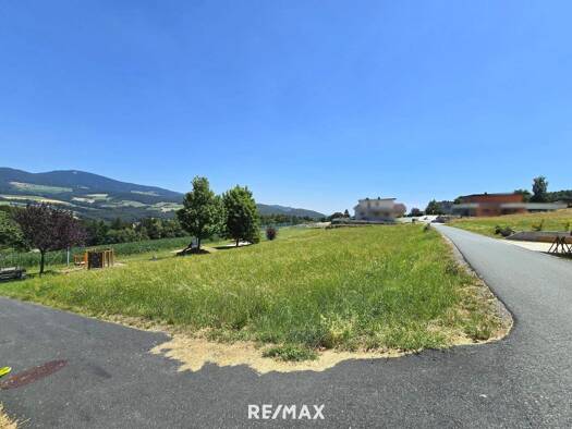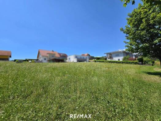 Leicht hanglagiges 1.573m² Grundstück, bestehend aus 1.259m² vermessenem, aufgeschlossenem Bauland und angrenzendem 314m² Freiland am Waldrand. Das Baugrundstück weist die Widmung "Wohngebiet allgeme...